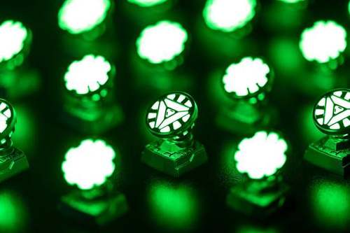 第一款键帽产品,其创意来自于漫威人物钢铁侠的方舟反应堆(Arc Reactor)。众所周知,这个方舟反应堆是钢铁侠的生命装置与能量来源,既阻挡了弹片进入心脏的危险,也成为钢铁侠战衣不可或缺的能量输出,小小的方舟反应堆里蕴藏着足以毁灭世界的能量。这样的可怕能量,如今被“压缩”在小小的键帽之内,可谓一触即发。