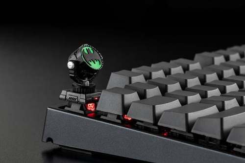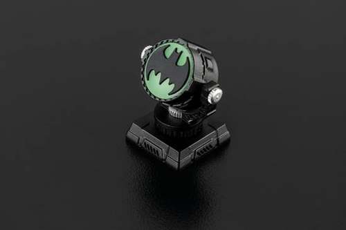 第二款键帽产品,其创意则来自DC旗下蝙蝠侠系列电影中的经典道具,即用来召唤蝙蝠侠的信号灯。然而,这颗键帽已然不再是简单的信号灯,而是以探照灯样式高度还原出来。整个键帽由四部分组成,分别是底座、灯架、灯罩和夜光硅胶,灯架支持360度旋转,灯罩支持前/上/后旋转探照,四四方方,精致非凡,比起手办的细腻打造可谓有过之而无不及。