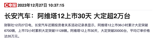 从最为直观的销量方面来看,对比两款合作新车型问界M9和阿维塔12,前者在上市两个小时内大定突破1万辆,而长安汽车本周披露的投资者关系活动记录表显示,阿维塔12上市72小时累积大定突破11128辆,上市30天大定突破20000台。可以看出赛力斯问界的地位仍不可撼动,但在今年年度销量目标进度上,根据1-11月的销量统计,长安汽车完成度超过80%,而赛力斯则完成约66%。