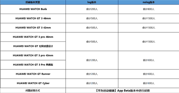 具体招募型号为:WATCH Buds、WATCH GT 3、WATCH GT 3保时捷设计、WATCH GT 3 Pro、WATCH GT 3 Pro典藏版、WATCH GT Runner、WATCH GT Cyber。