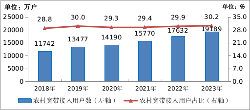 此外,农村地区的固定互联网宽带接入服务也在加速普及,截至2023年底,全国农村宽带用户总数达1.92亿户,全年净增1557万户,比上年增长8.8%。